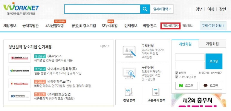 워크넷 홈페이지에 접속한 후