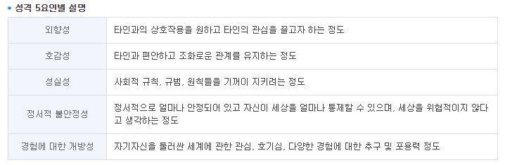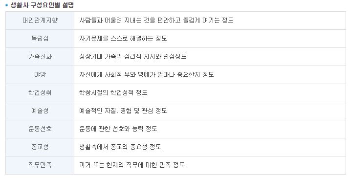 이런 식으로 심리검사 항목이 나와있다.