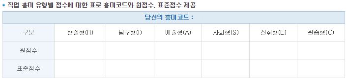 (워크넷 성인 직업심리검사 L유형)