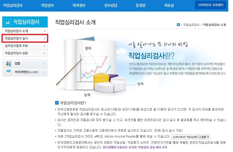 빨간 네모가 쳐있는 직업심리검사 항목을 클릭한 후