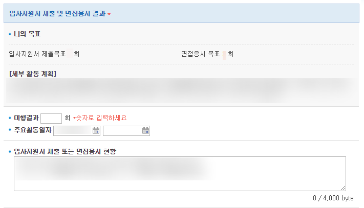 이 항목을 작성할 때는 나중에 이력서 넣고 한 번에 적으려고 생각하지 말고 이력서 하나 넣고 접속해서 작성 후 저장하고, 또 다음날에 넣으면 또 바로 작성하고 저장하는 방식으로 해야 나중에 안 까먹고 꼼꼼하게 잘 적을 수 있을 것 같음 (제출은 아직 X!!! 제출한 후에는 수정이 불가능함)