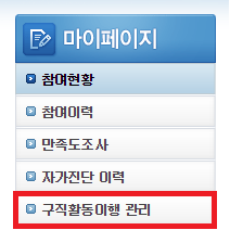 왼쪽에 구직활동이행관리를 클릭